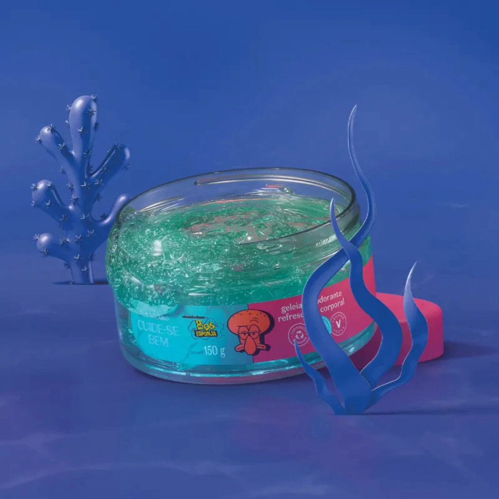A Geleia Desodorante Refrescante Corporal Bob Esponja Lula Molusco vai fazer parte da sua rotina de autocuidado oferecendo até 24 horas de hidratação para a pele com toque refrescante e um cheirinho delicioso inspirado no abacaxi! Com 95% ingredientes naturais, sua textura de gelatina ultraleve absorve rapidinho e desodoriza a pele.